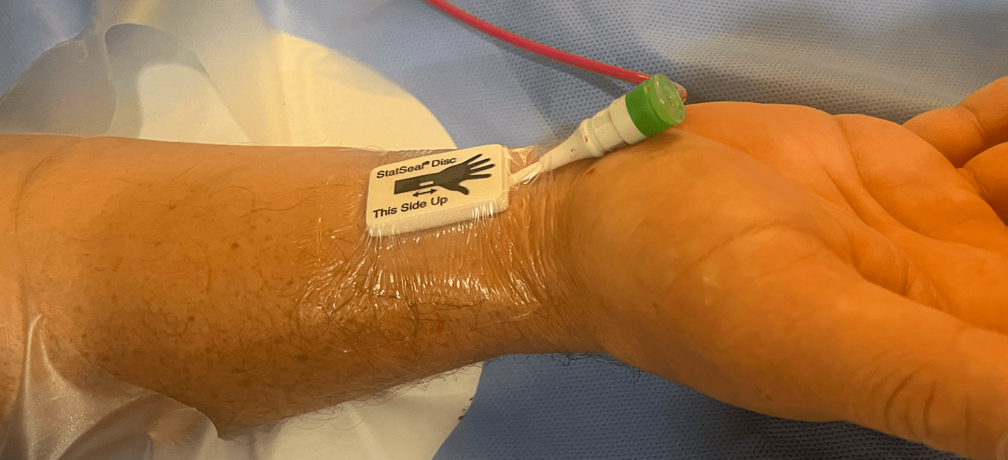 StatSeal Advanced RAD Disc, in conjunction with manual pressure or any radial hemostasis band, can help standardize, simplify and shorten the recovery process to under an hour, while minimizing complications.